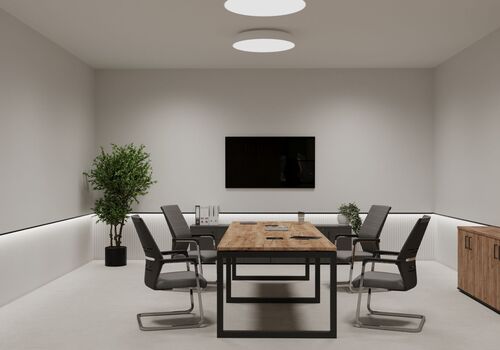 Совсем не обязательно использовать столы для переговоров, выполненные из премиум-материалов: все модели из ЛДСП выглядят модно, стильно, полностью отвечают запросам самых придирчивых топ-менеджеров и руководства компаний.