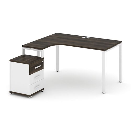 Стол эргономичный левый с опорной тумбой CN.SA-305(L) A/B/W Дуб Винченцо,м/к Белый
