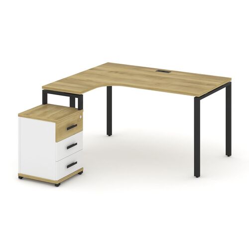 Стол эргономичный левый с опорной тумбой CN.SA-305(L) A/B/W Дуб Винченцо,м/к Черный