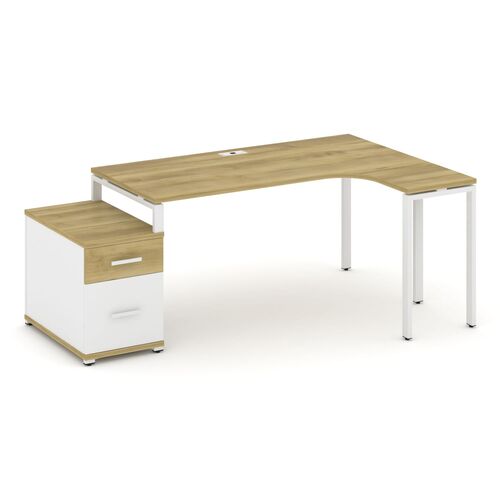 Стол эргономичный правый с опорной тумбой CN.SA-304(R) A/B/W Дуб Мали,м/к Белый