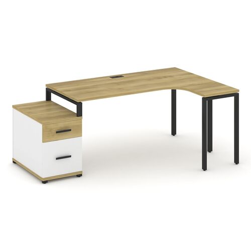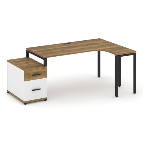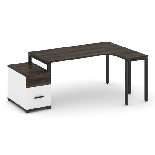 Стол эргономичный правый с опорной тумбой CN.SA-304(R) A/B/W Дуб Мали,м/к Черный