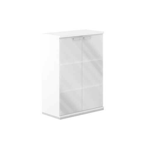 Шкаф средний широкий (2 низких фасада стекло сатин в раме) SN.STS.E-203 Белый