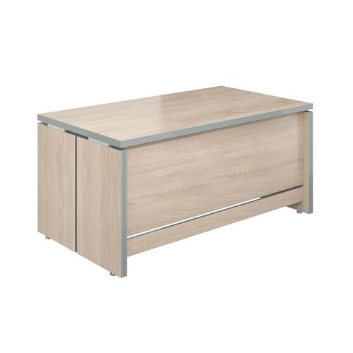 Современная мебель из ЛДСП является совершенно безвредной для здоровья, ведь панели, пропитанные формальдегидом, уже остались в прошлом. Теперь изделия из ламинированной древесно-стружечной плиты по безопасности не уступают другим древесным материалам, зато их отличает невысокая стоимость, доступность широкому кругу потребителей. Плюсы столов для руководителя из ЛДСП: