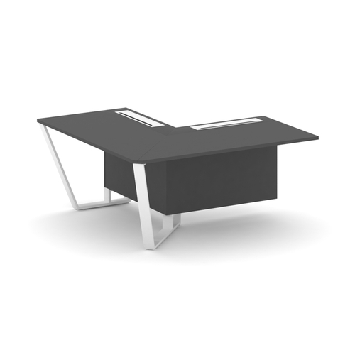 Стол руководителя с опорной тумбой (правый) (Фурнитура INOX) FI-117R.GG
