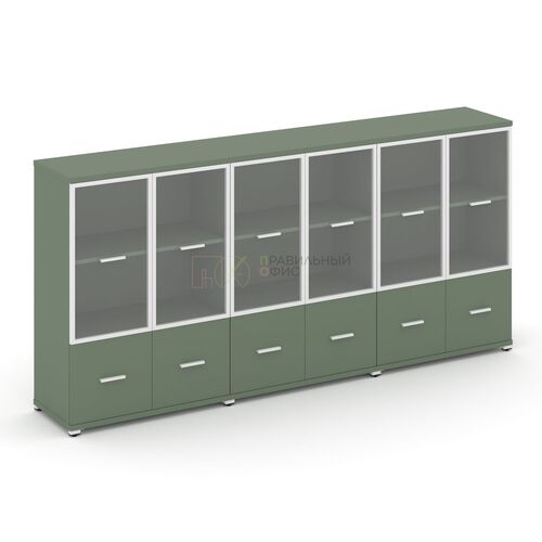 Шкаф высокий, 4-х дв., со стеклом, з.ст ЛДСП SG.811.OL.WH.GL