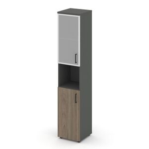 Шкаф высокий узкий левый (1 низкий фасад ЛДСП + 1 низкий фасад стекло сатин в раме) SN.STU-106(L)