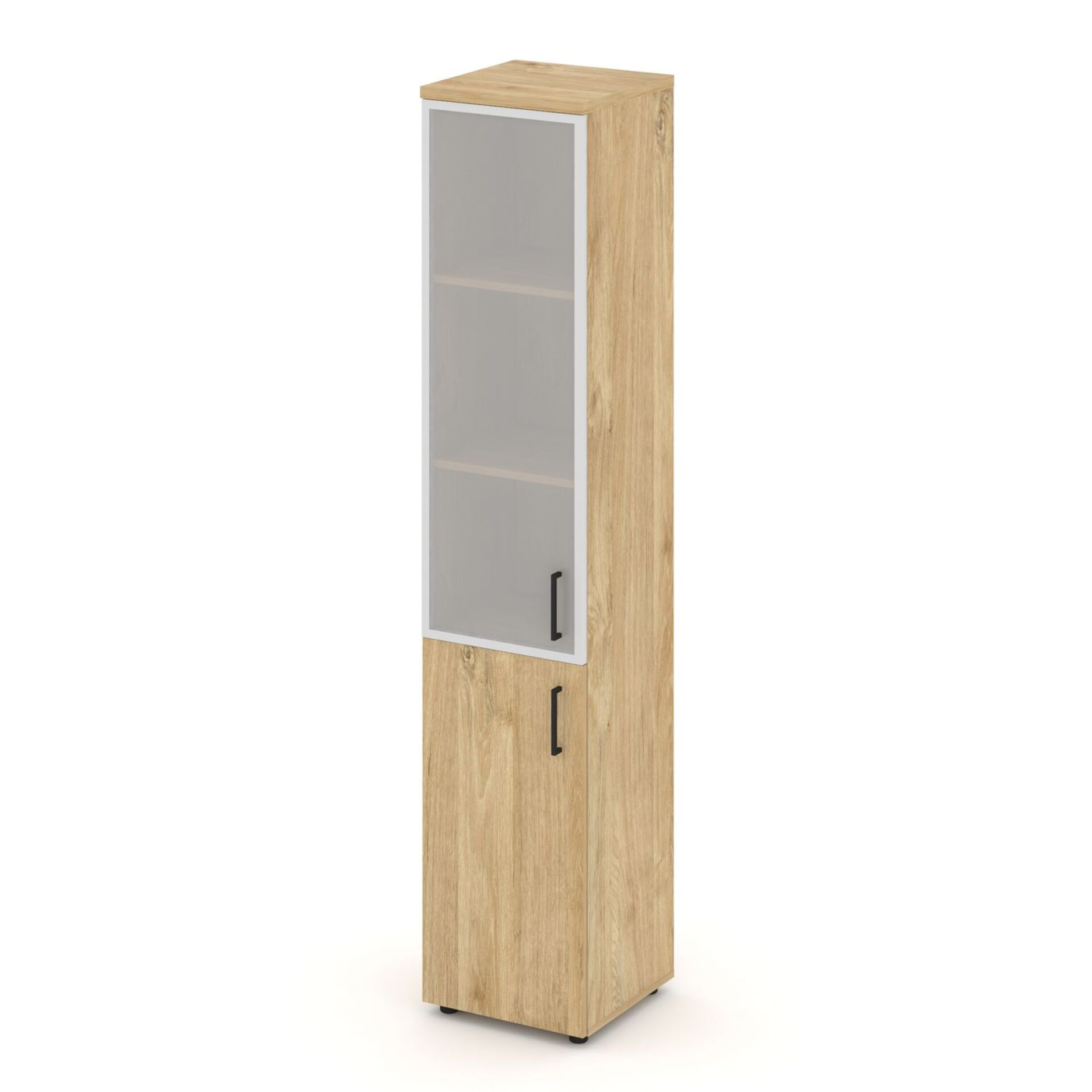 Шкаф высокий узкий левый (1 низкий фасад ЛДСП + 1 средний фасад стекло сатин в раме) SN.STU-103(L)
