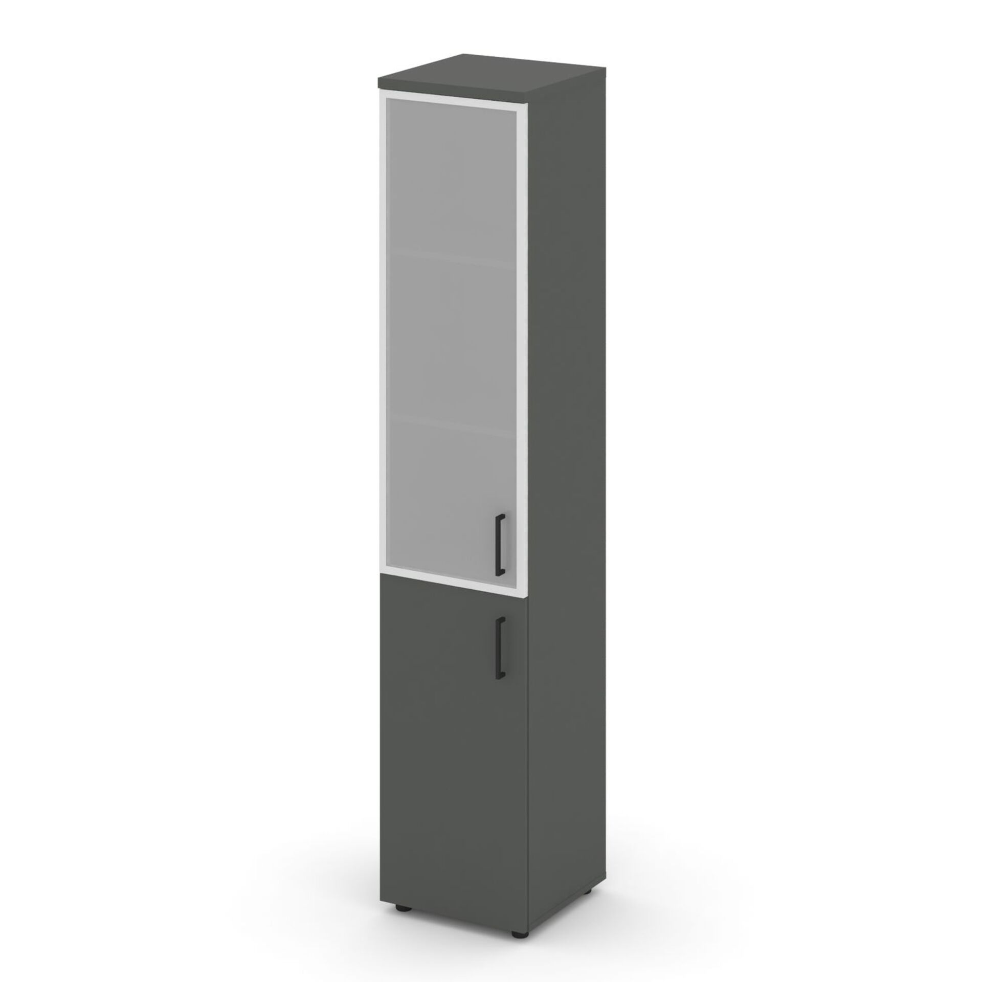 Шкаф высокий узкий левый (1 низкий фасад ЛДСП + 1 средний фасад стекло сатин в раме) SN.STU.E-103(L)