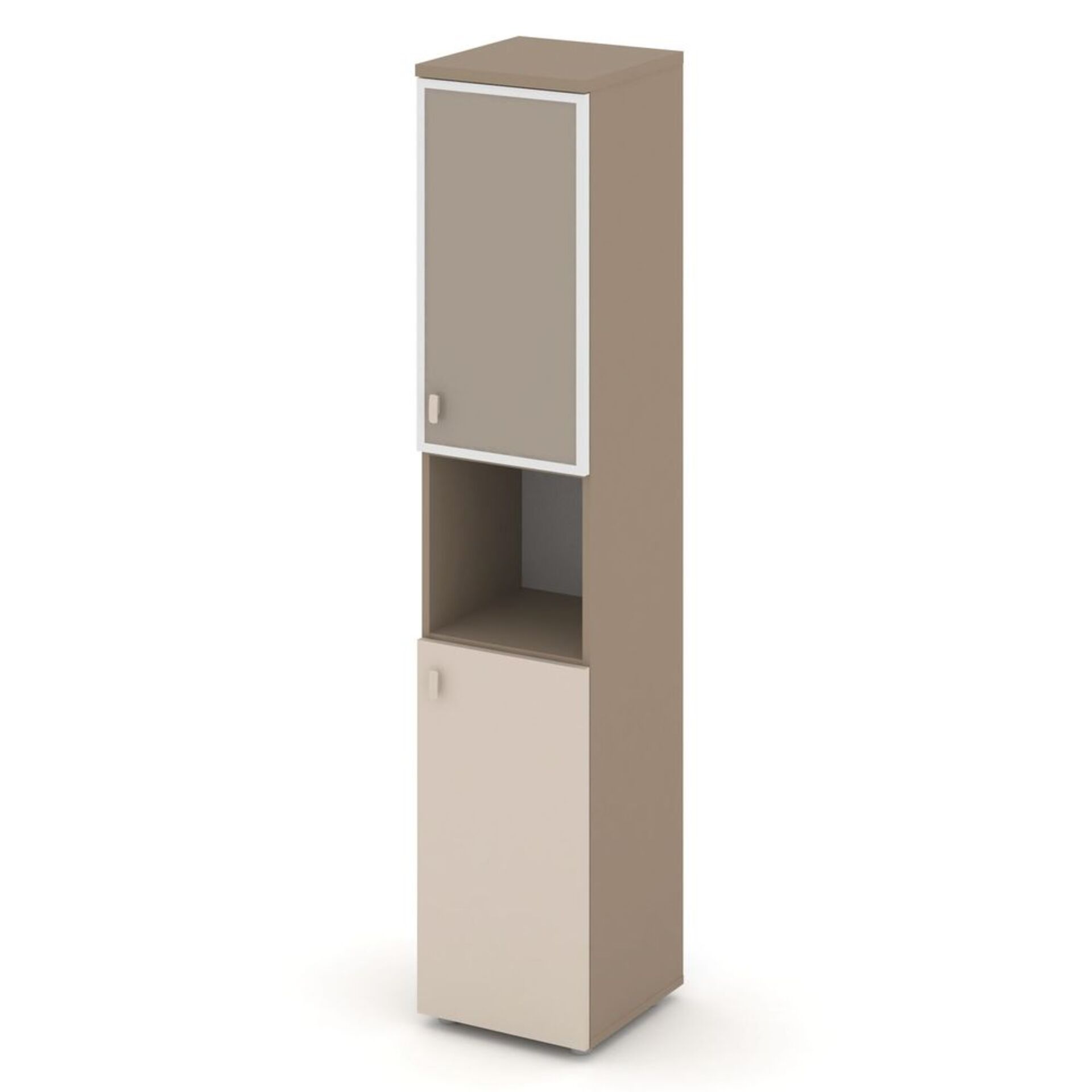 Шкаф высокий узкий правый (1 низкий фасад ЛДСП+1 низкий фасад стекло лакобель в раме) ES.SU-1.4R (R) U