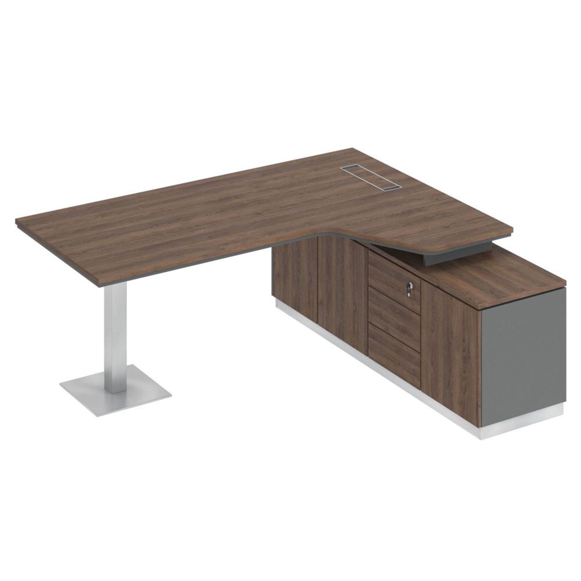 Стол руководителя эргономичный на опорной тумбе правый СИ 114