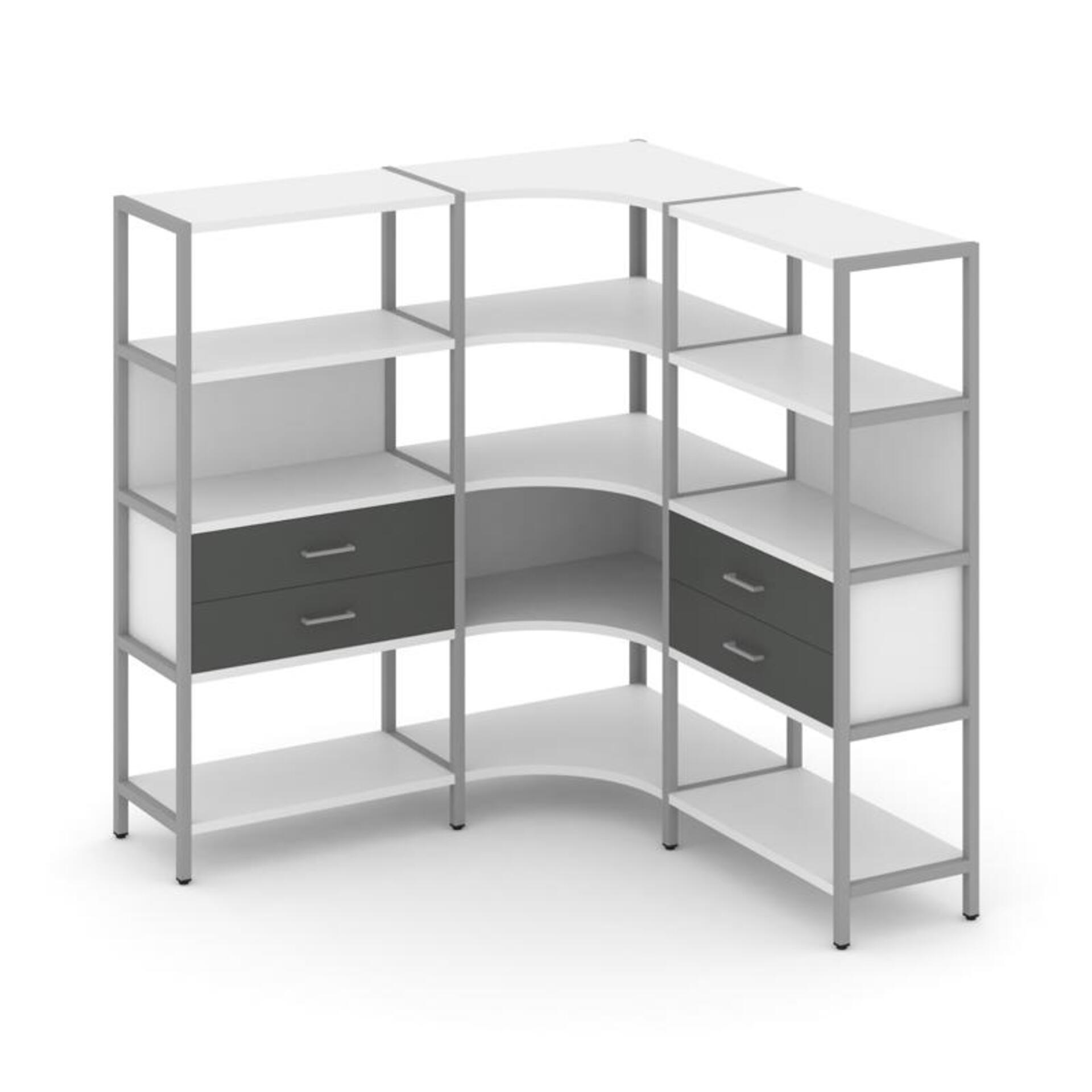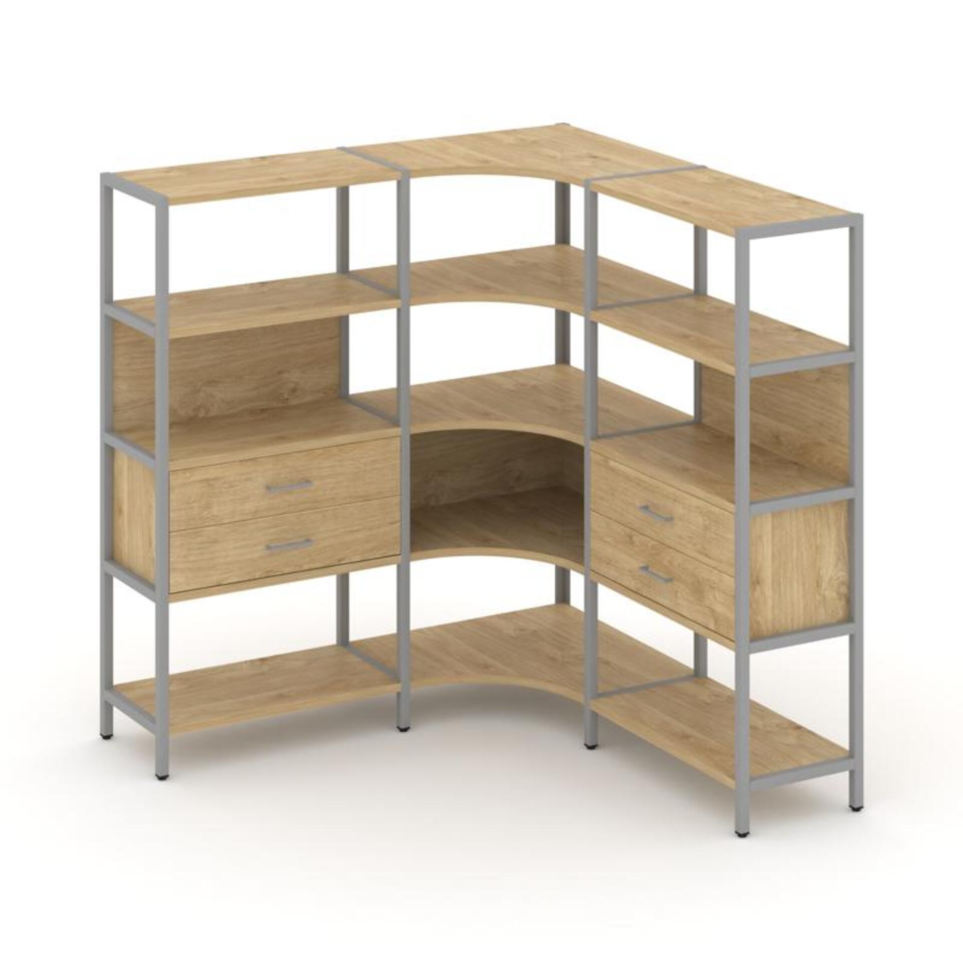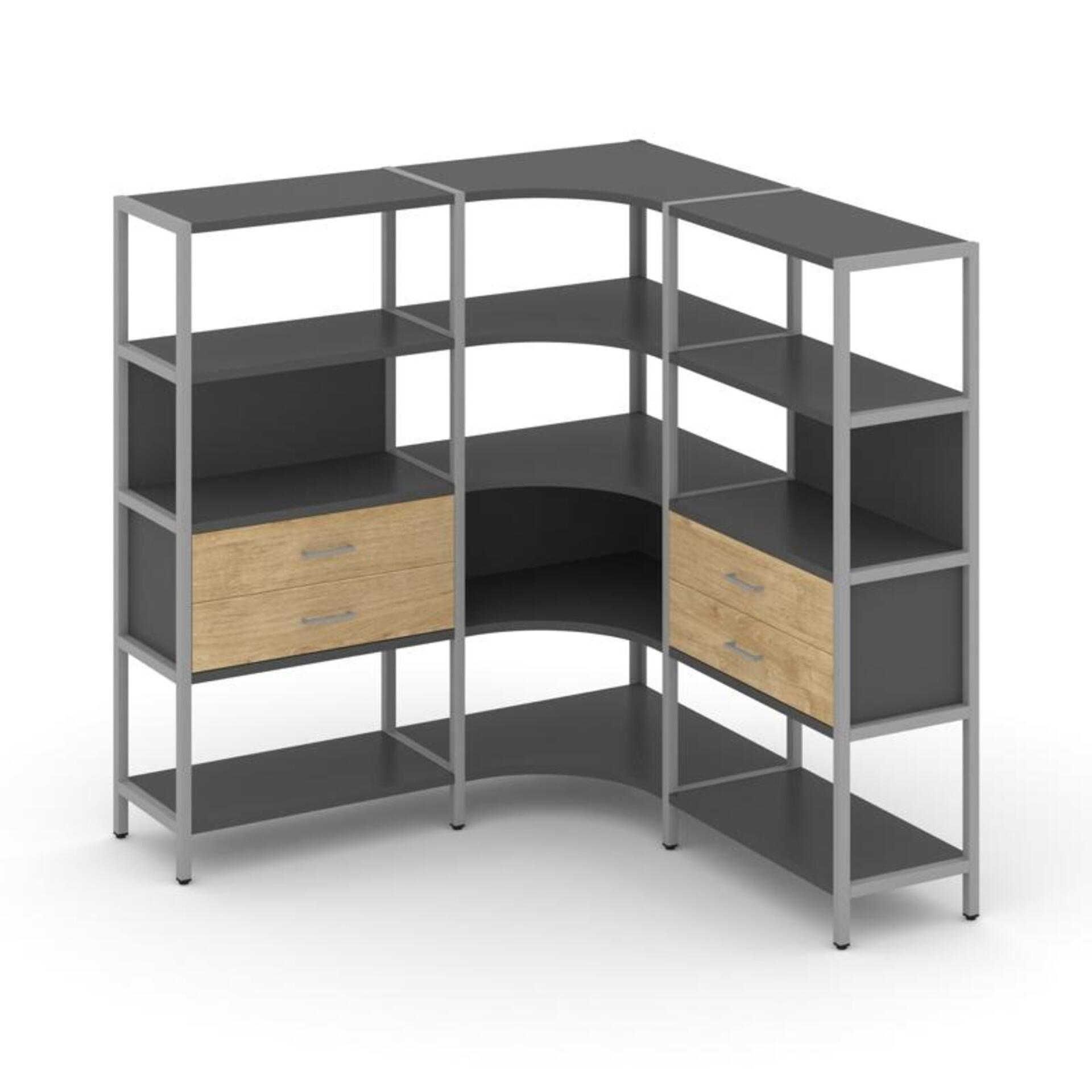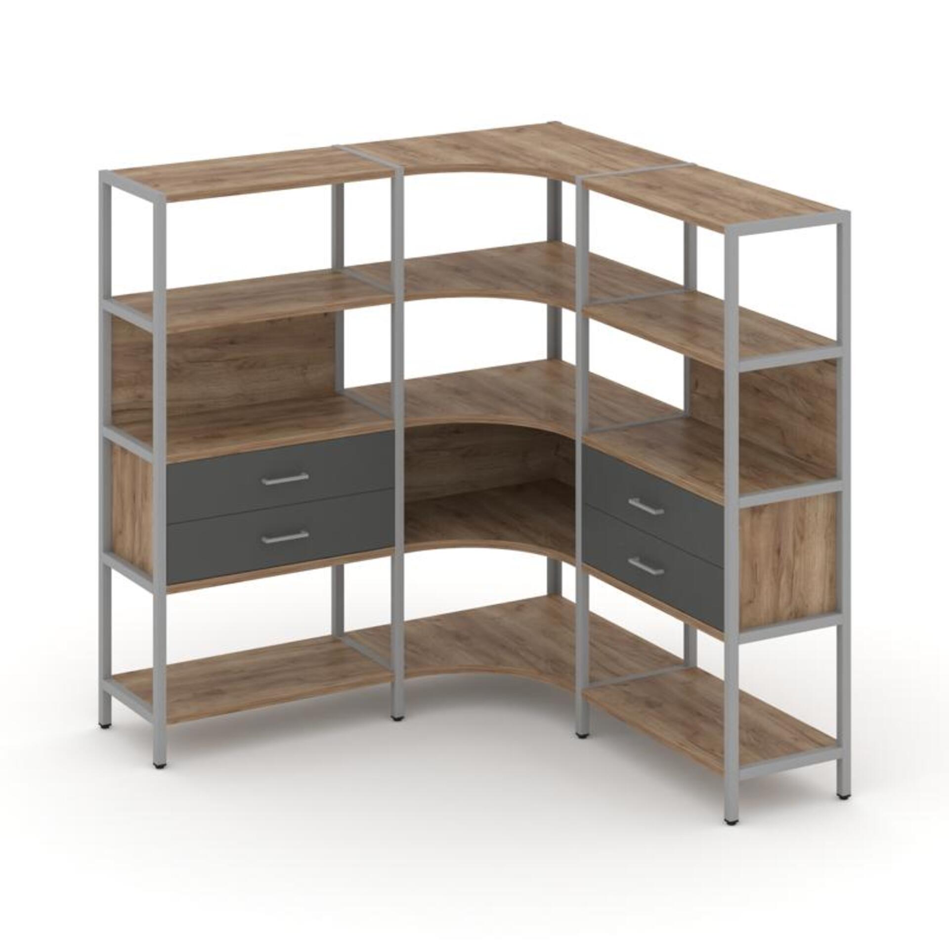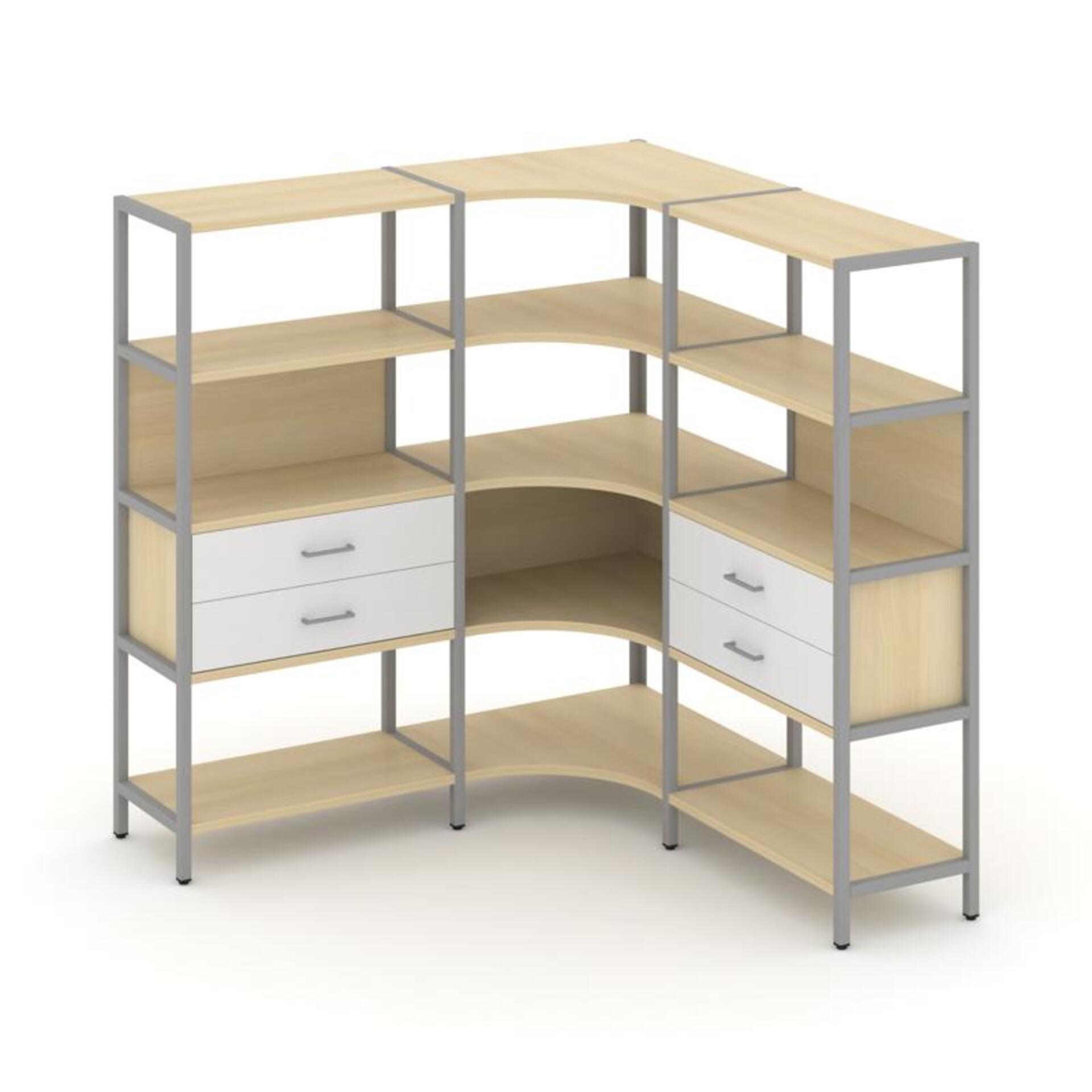 Трехсекционный угловой стеллаж четырехярусный с ящиками SN.STMU-431