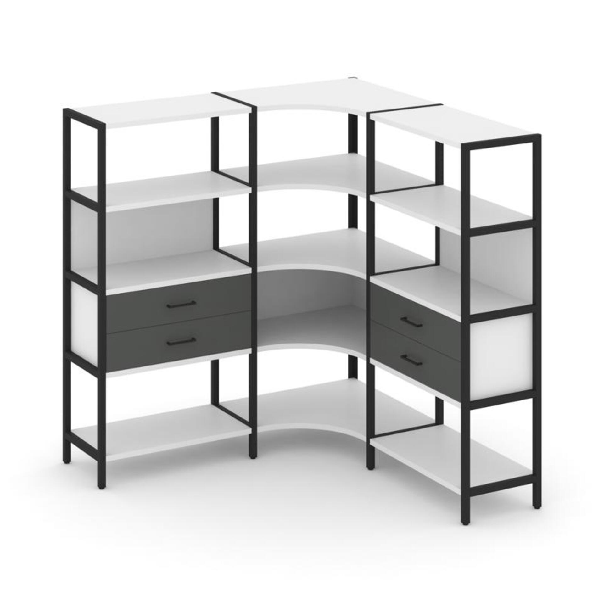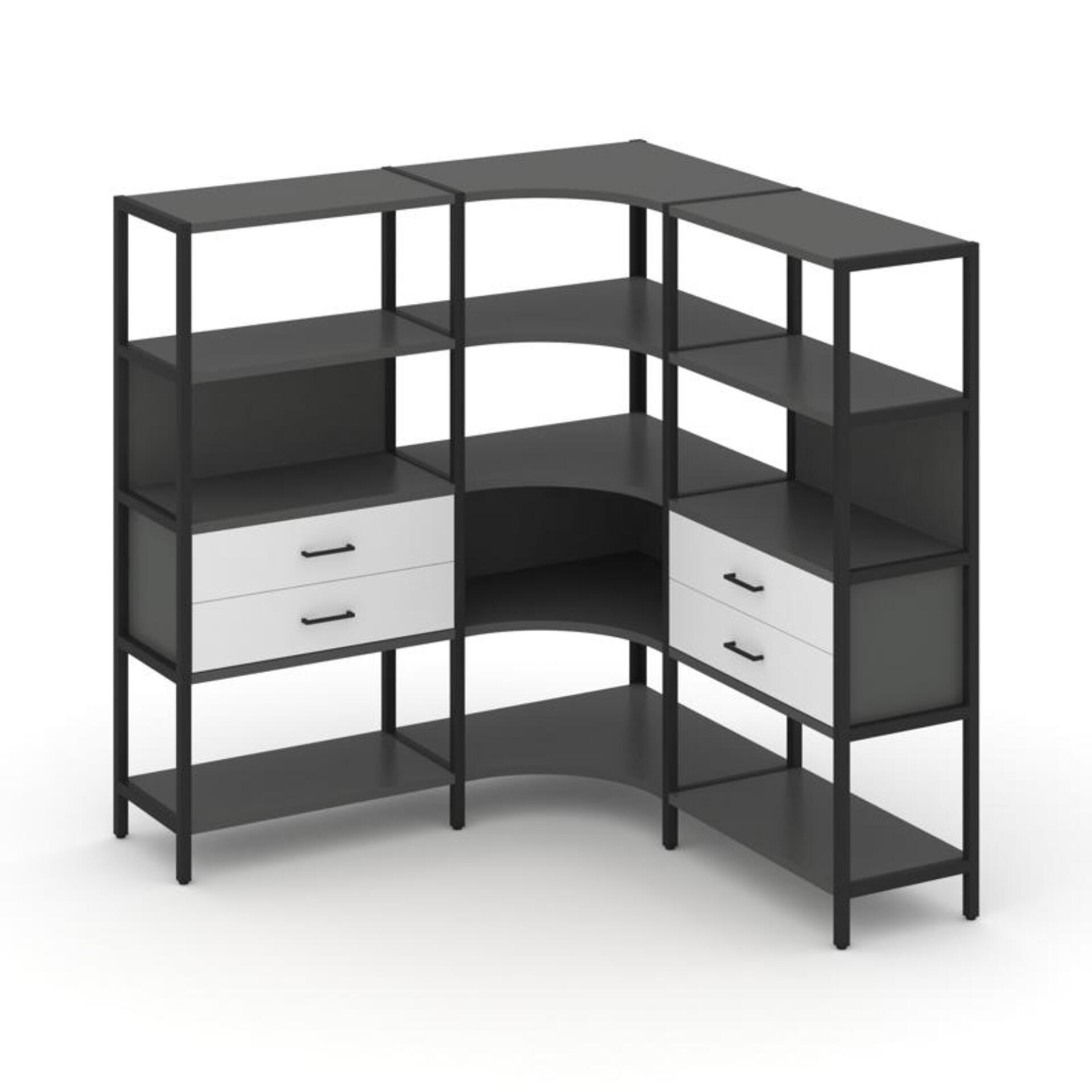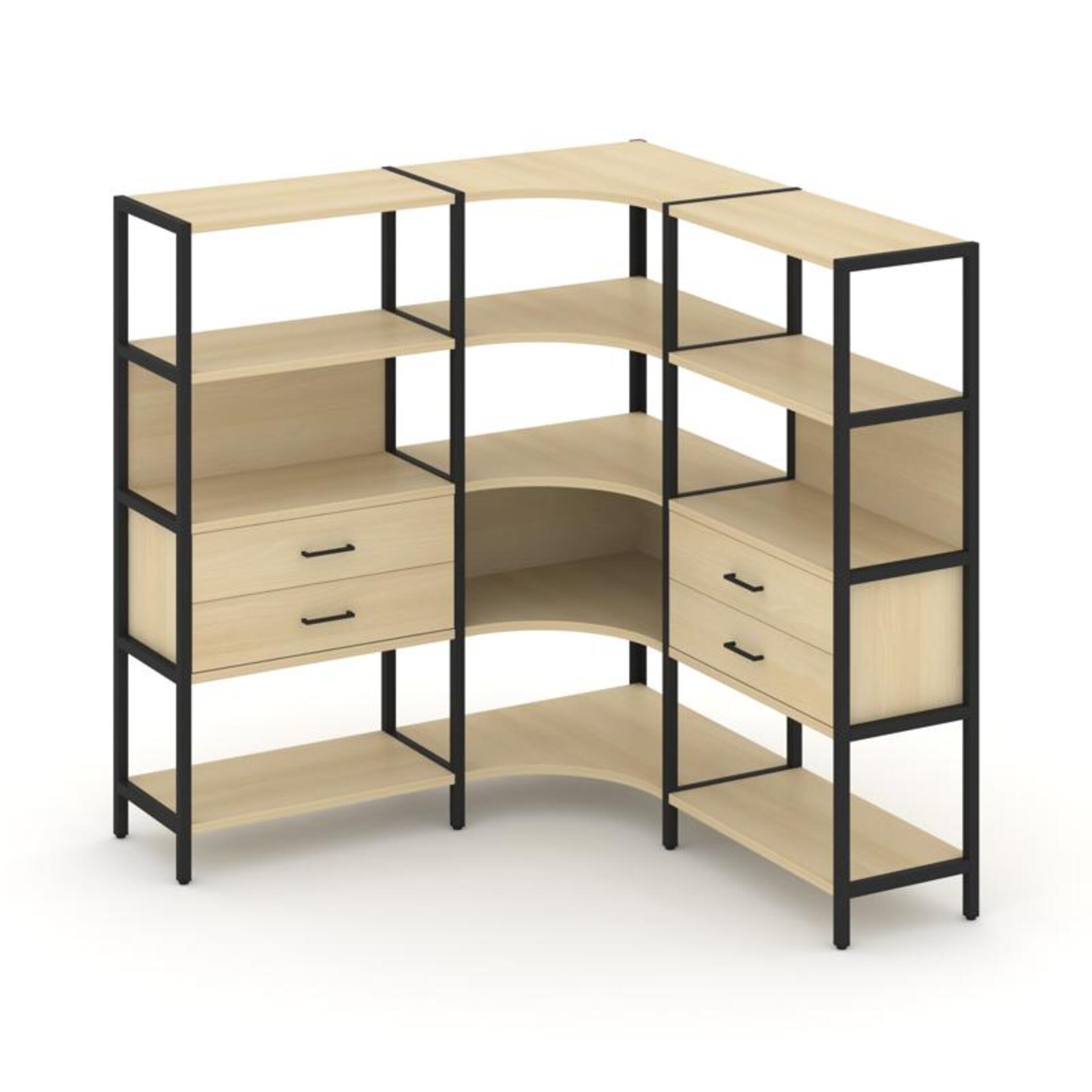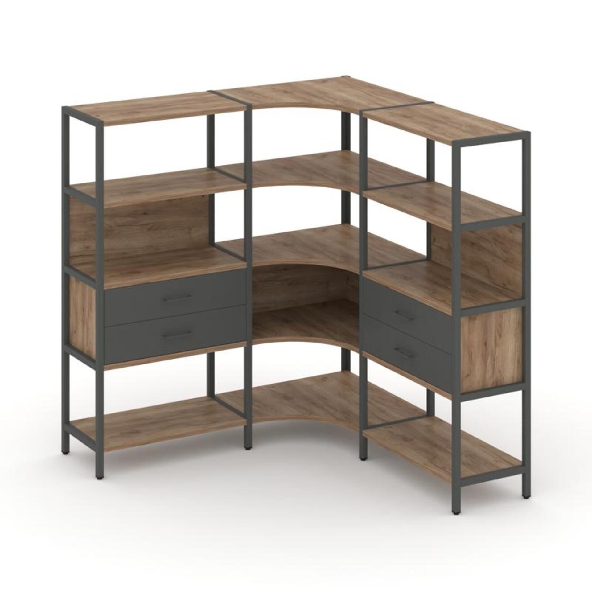 Трехсекционный угловой стеллаж четырехярусный с ящиками SN.STMU-431