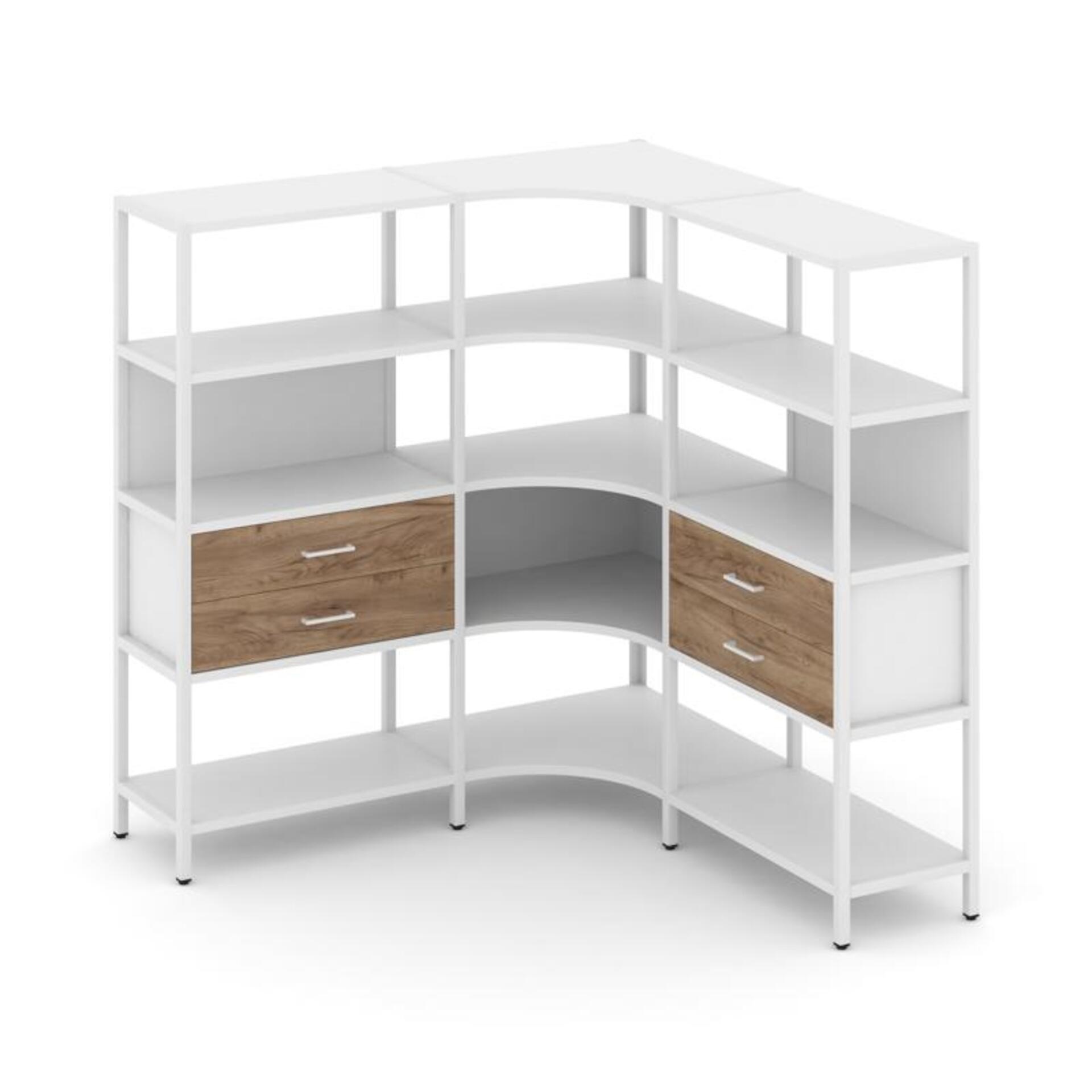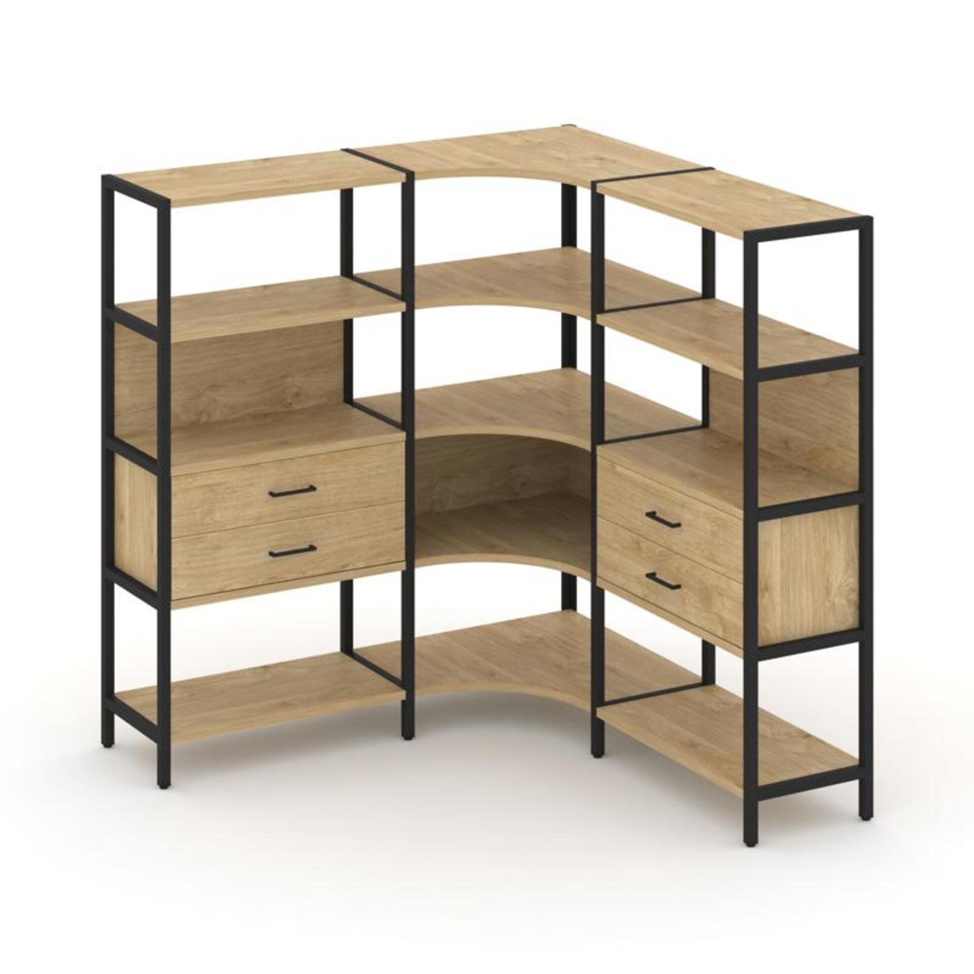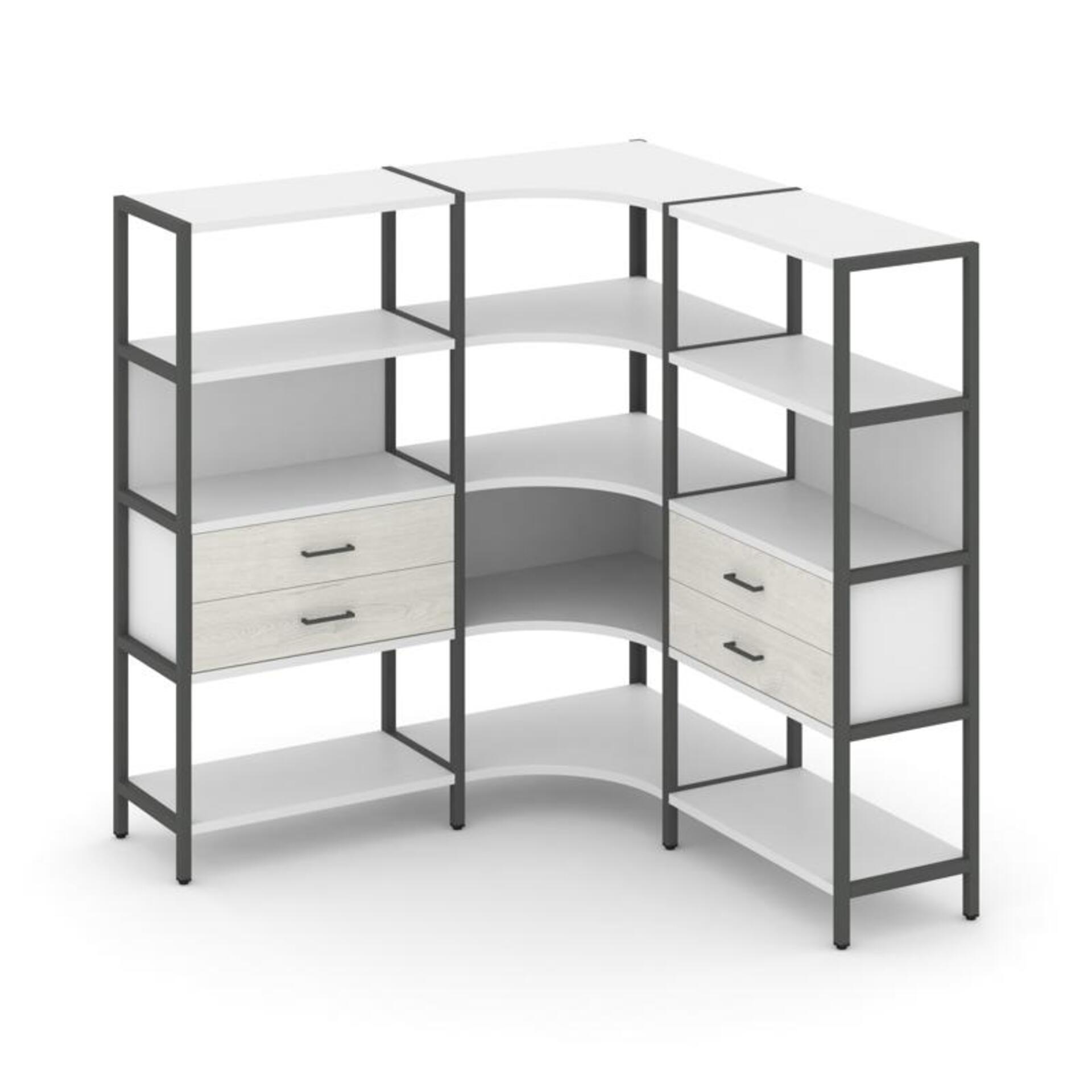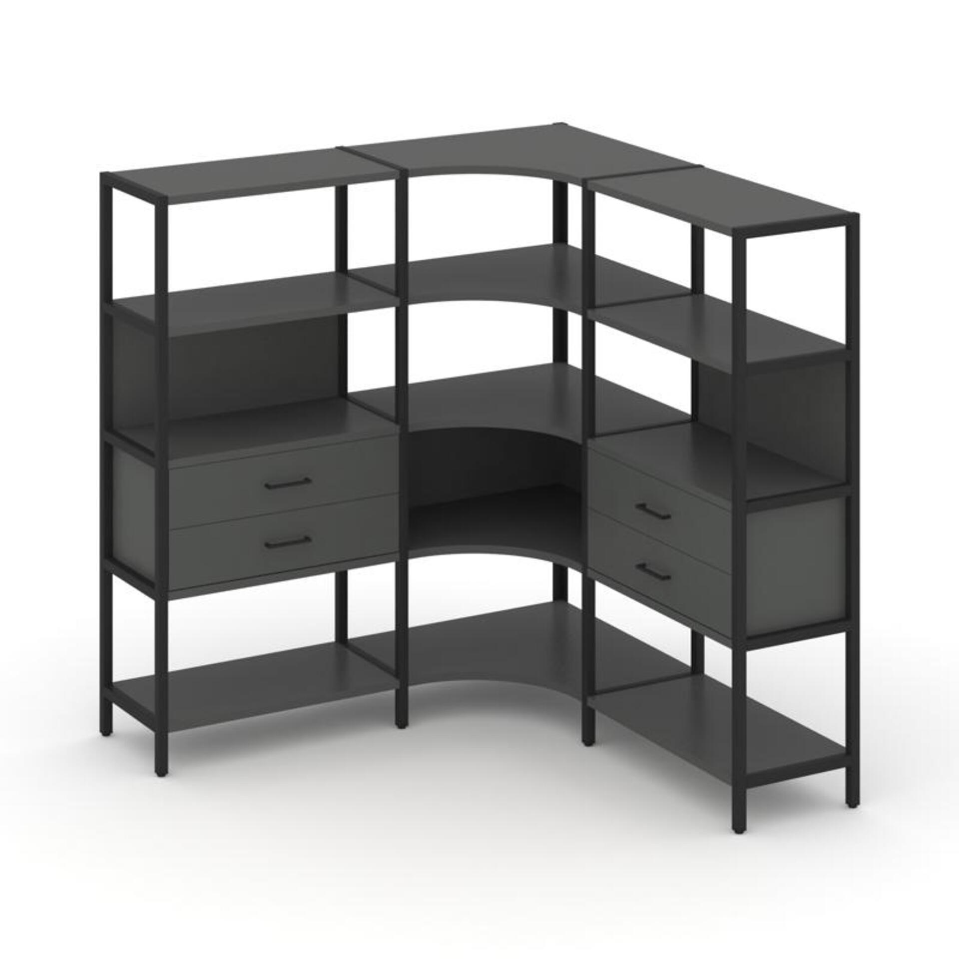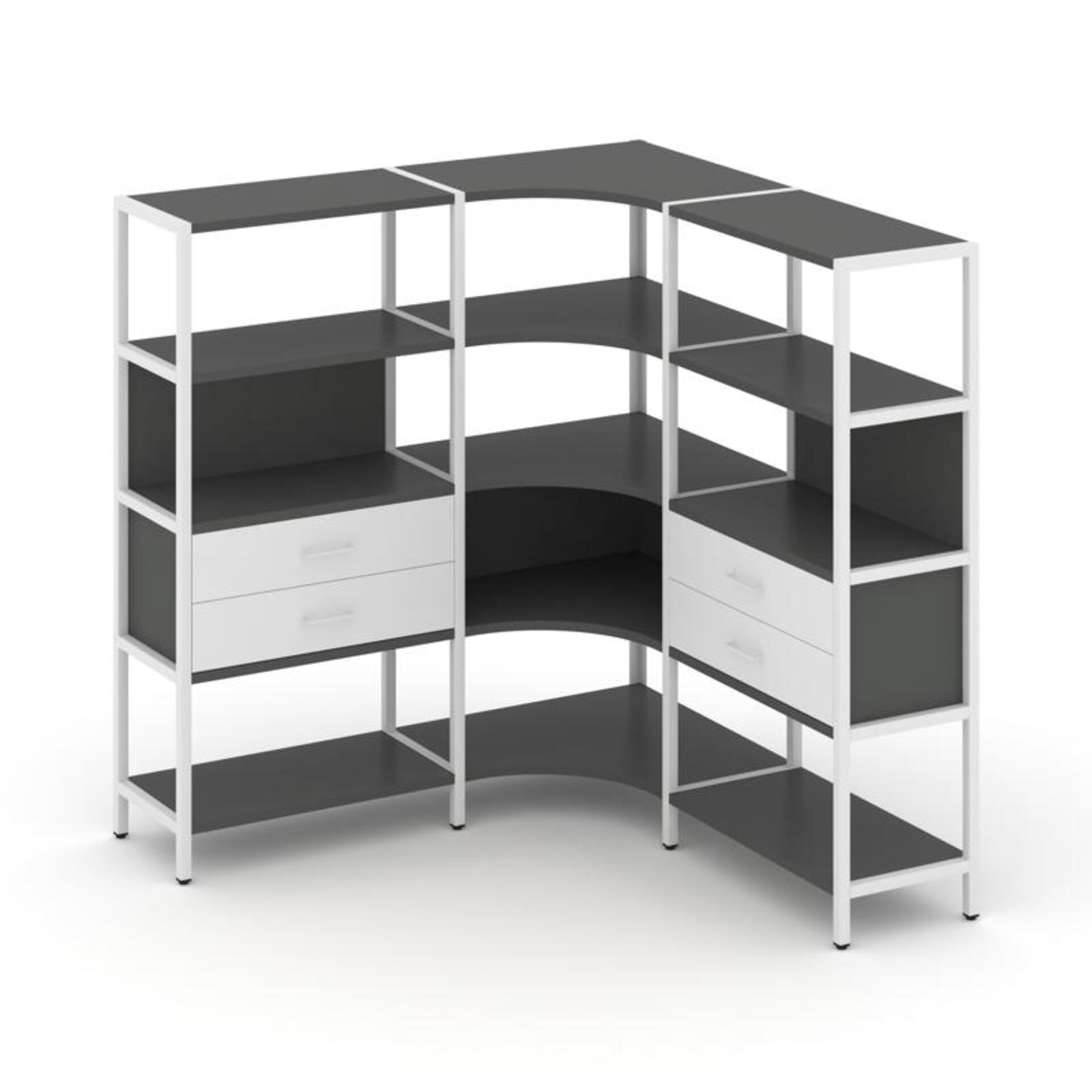 Трехсекционный угловой стеллаж четырехярусный с ящиками SN.STMU-431